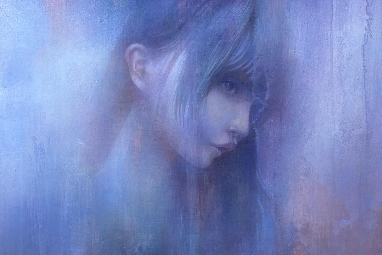 530mm × 455 mm パネルに寒冷紗、白亜地、油彩、アキーラ
