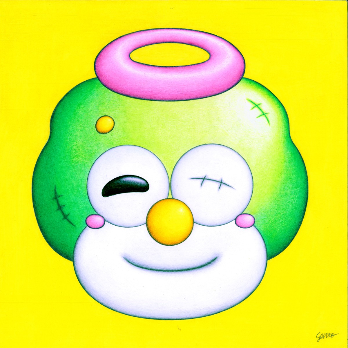 事物の外面にとらわれることなく本質をとらえる観察を重視。観察を通じてみえてくるものを色鉛筆による緻密なグラデーションで表現し、立体感のあるポップなキャラクターや抽象的な形へと昇華させています。