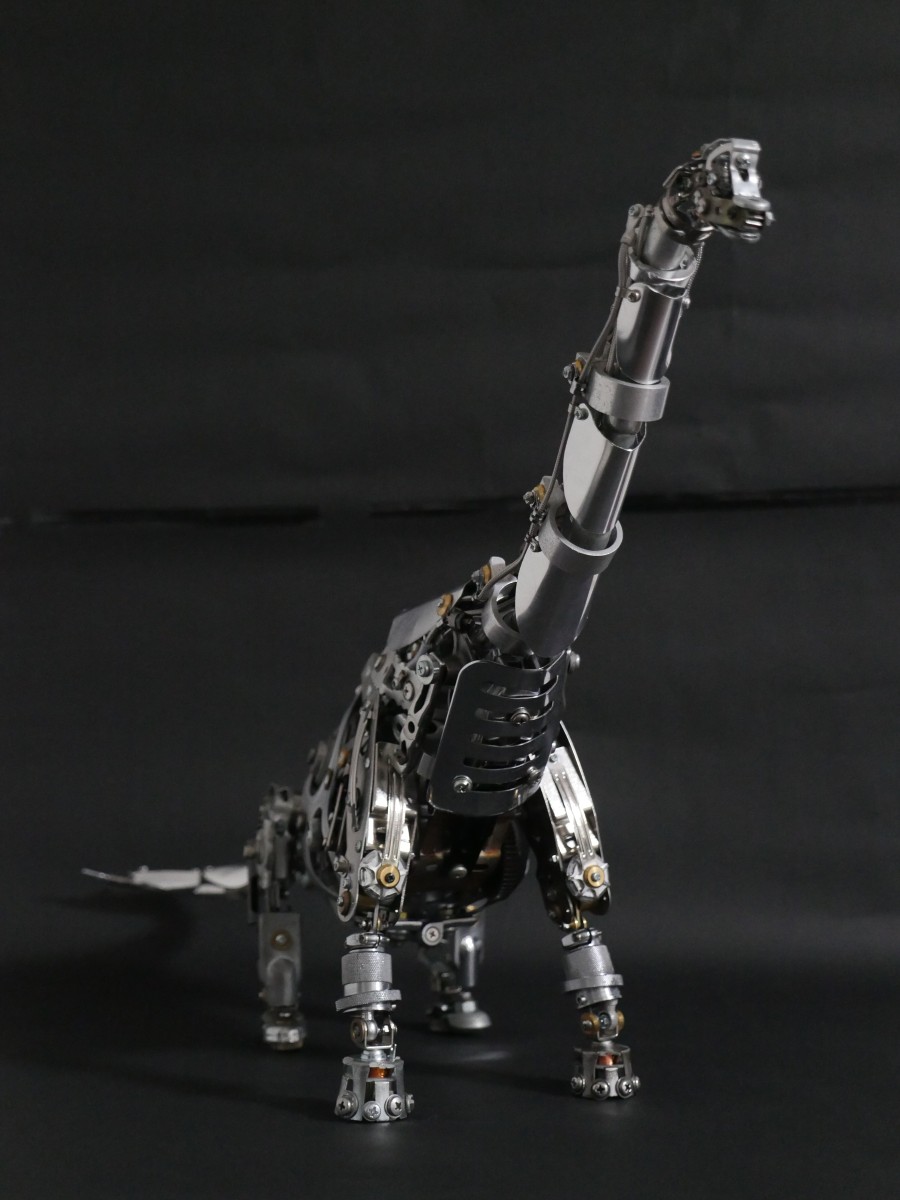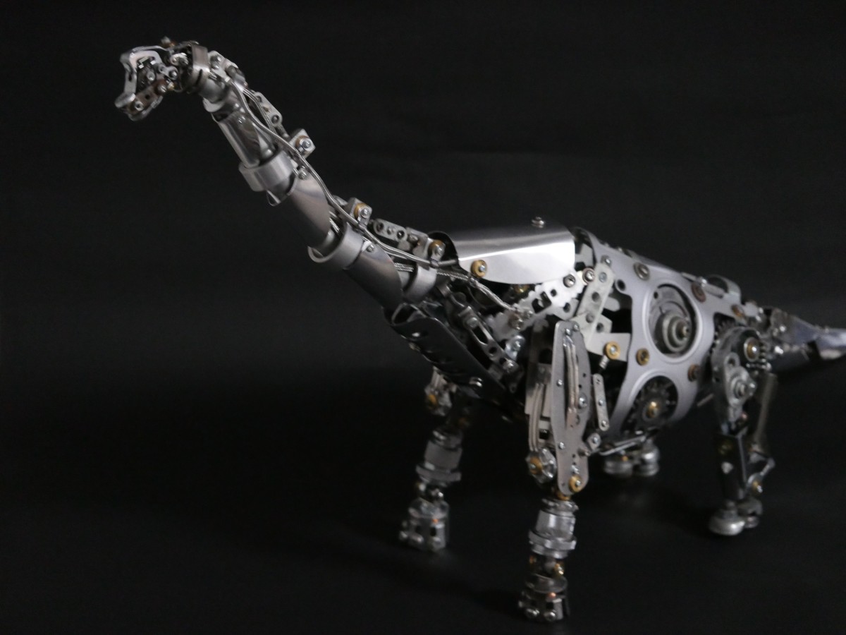 多種多様な金属の廃材を組み合わせ、ブラキオサウルスを制作。