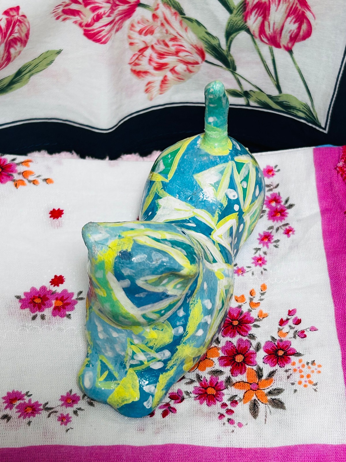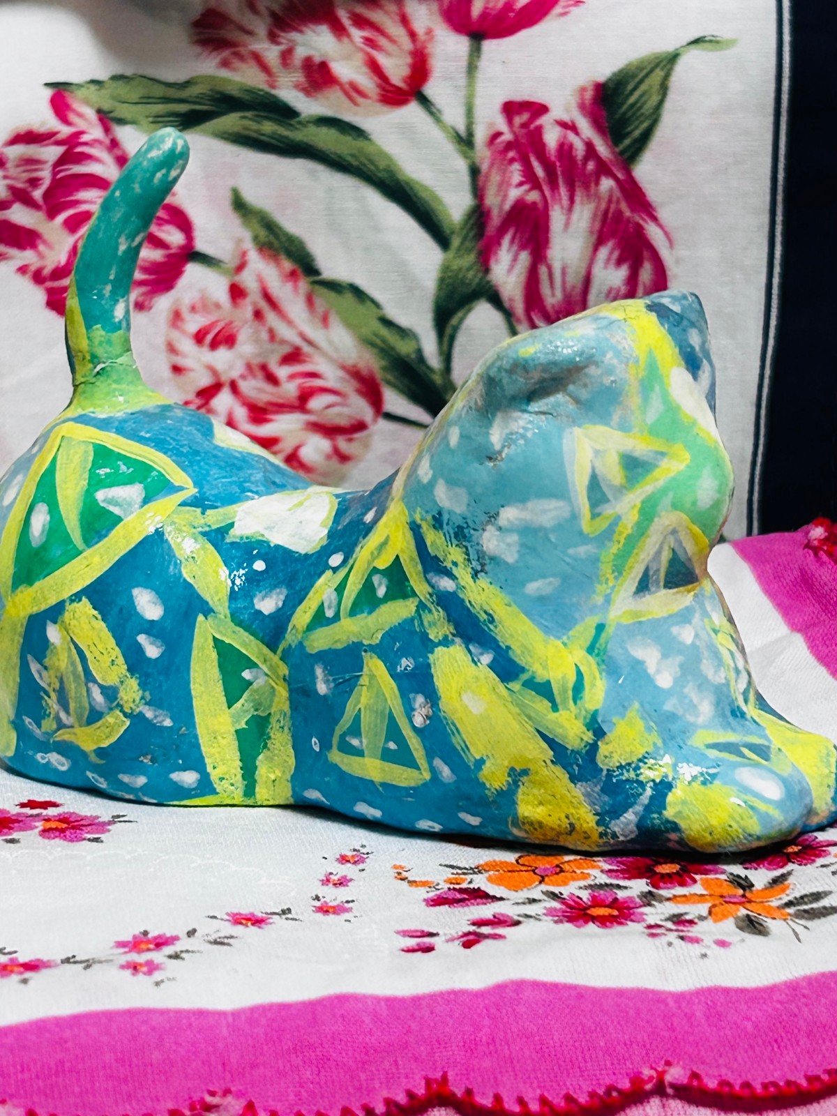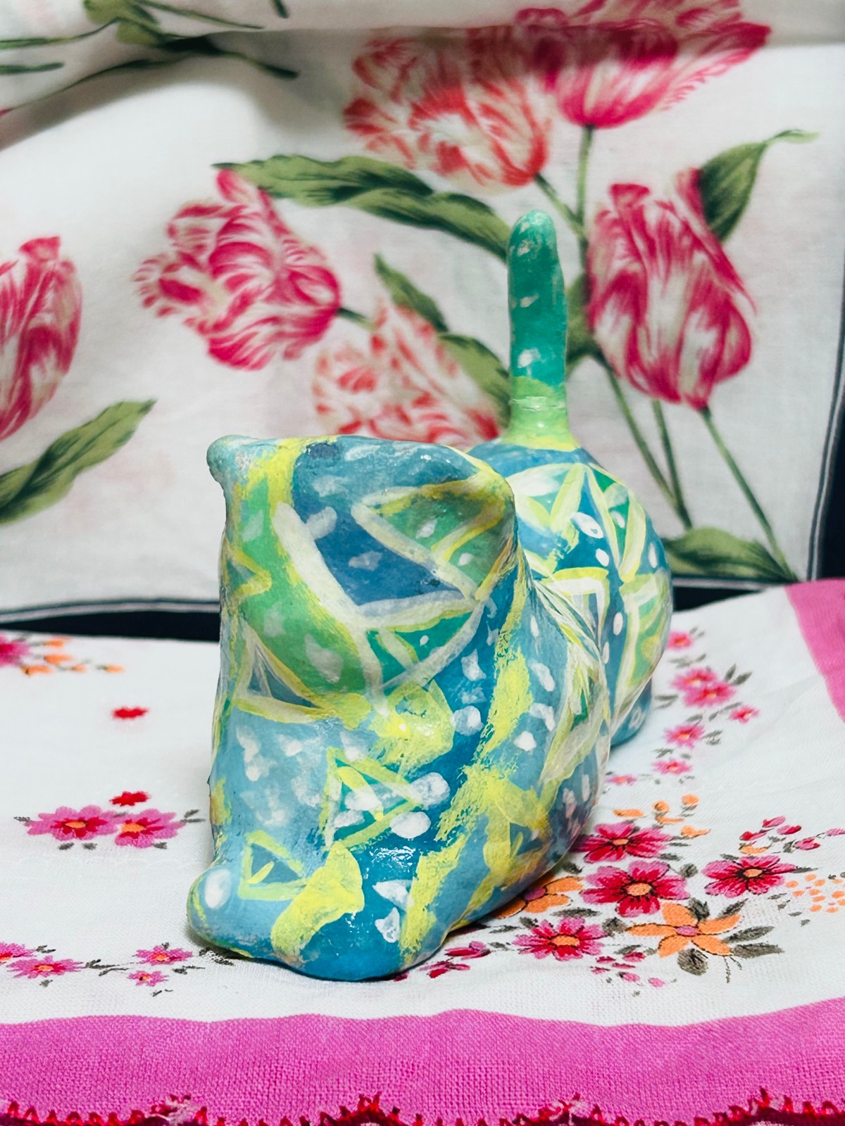 うさぎを作りたくてこねていたら、いつの間にか猫になっていました。爽やかな海を感じさせる色合いで気に入っています。