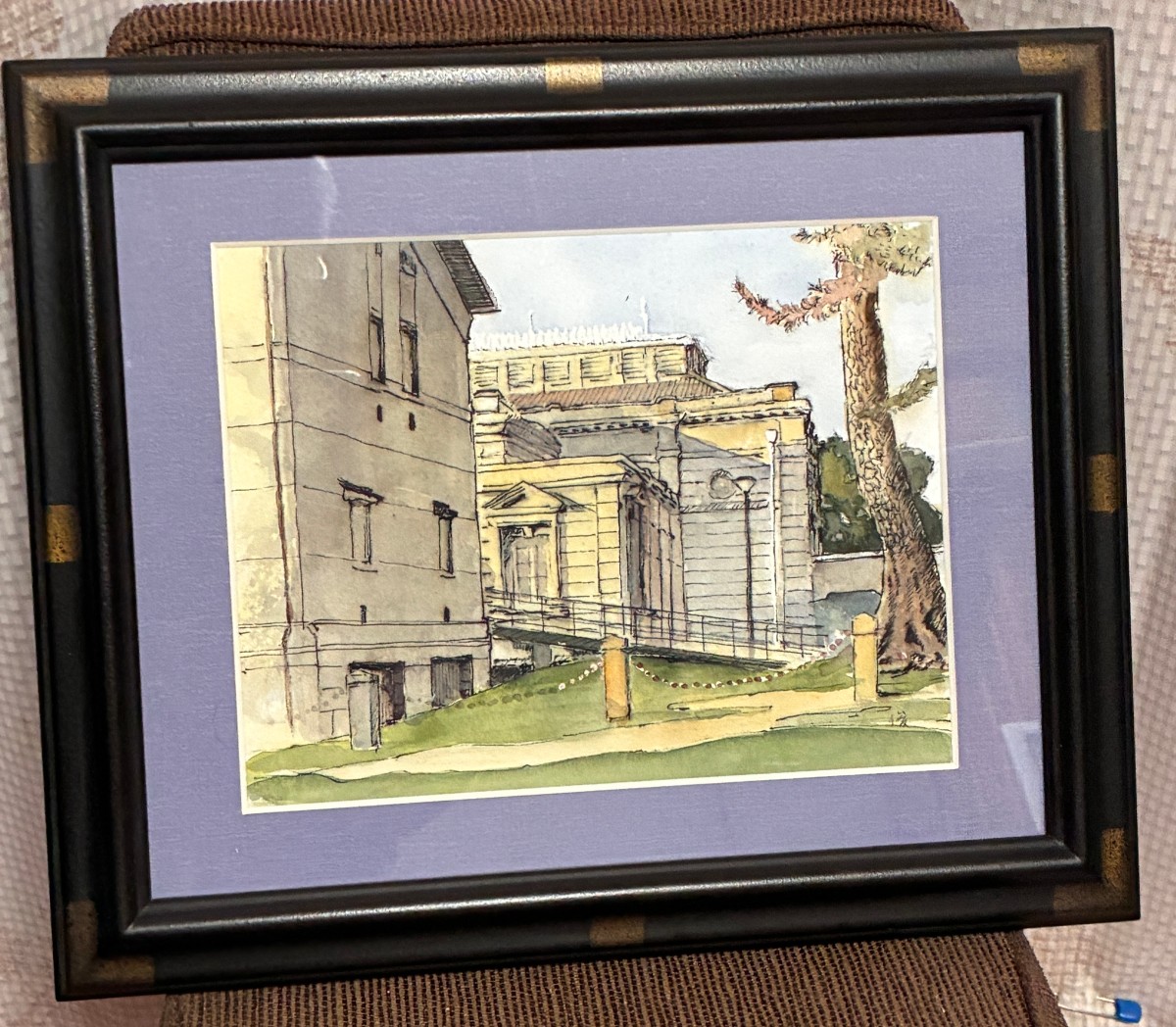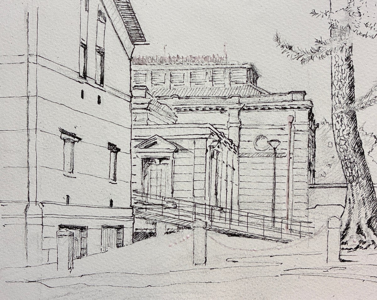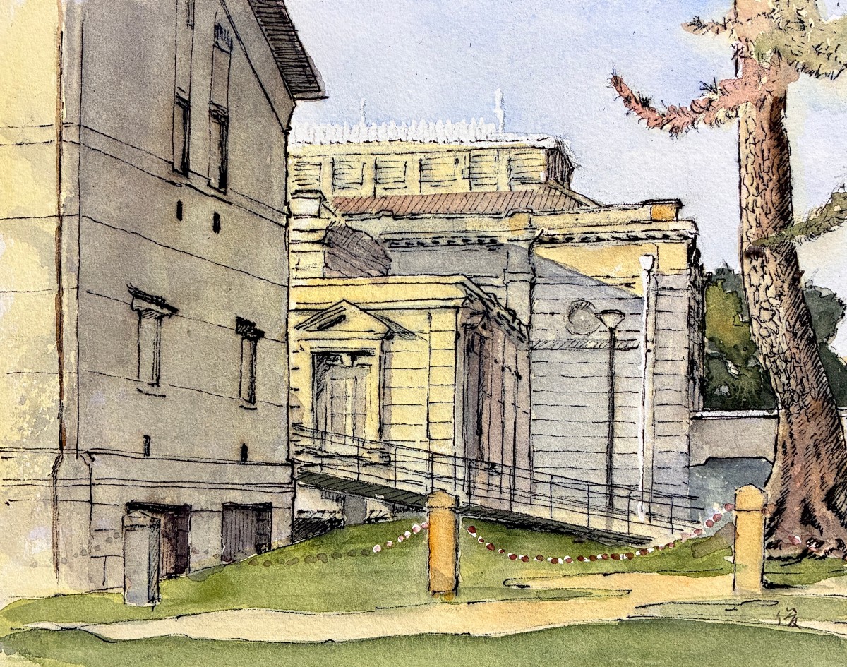 夕陽に照らされた博物館のスケッチです。