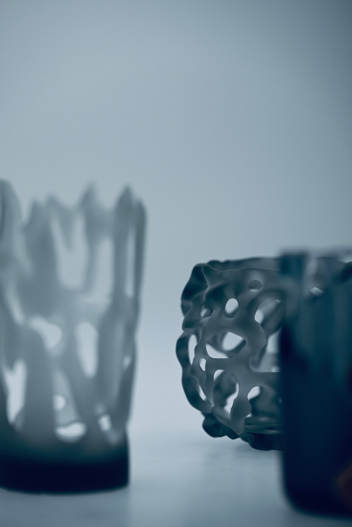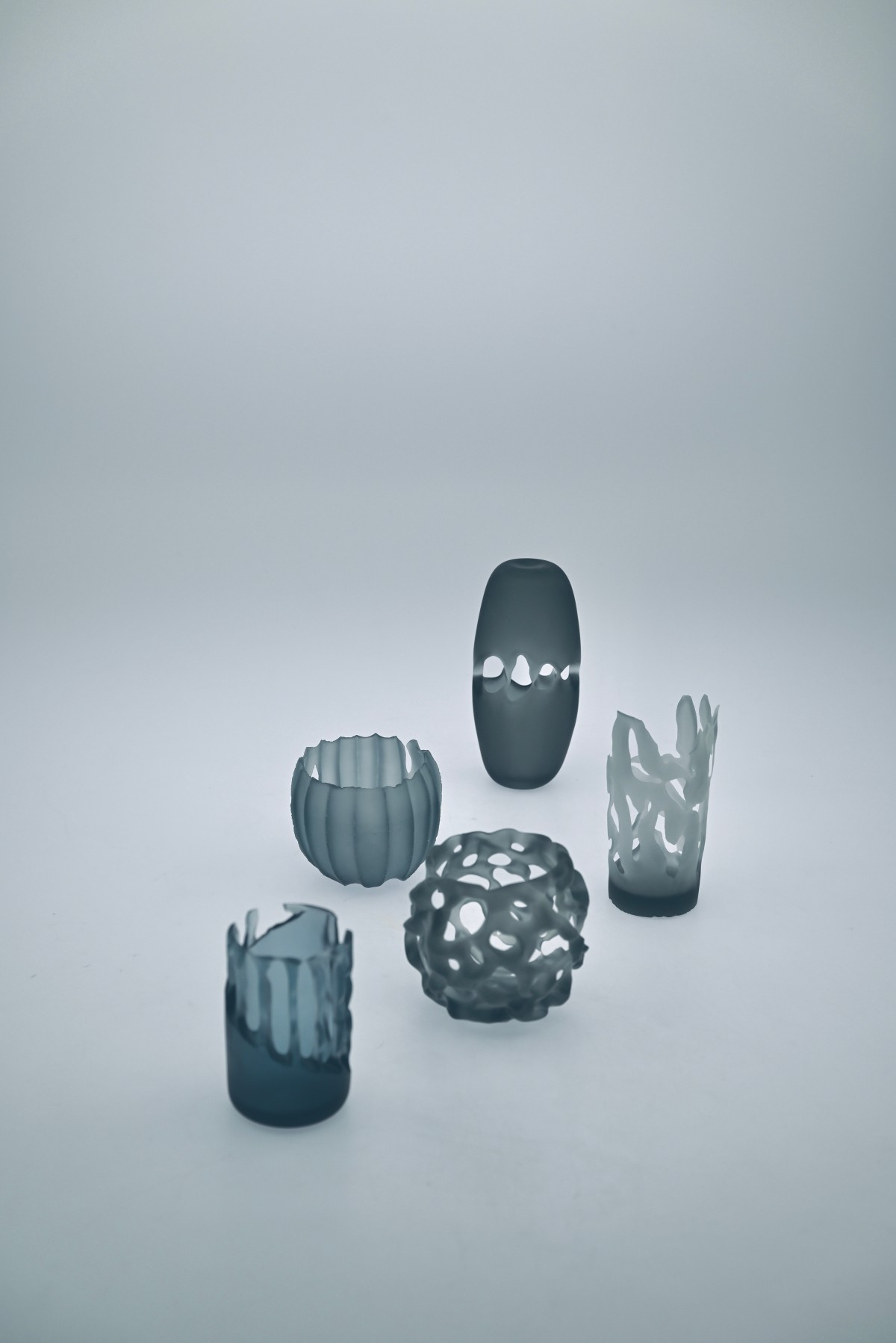 多摩美術大学工芸学科ガラス専攻 在籍「傷は、美しいか」をテーマに、サンドブラスト技法でガラスを削って生まれる形や表情を探究している。サンドブラストでガラスを削るとは、無数の傷をつけて造形することを意味する。「欠け、薄くなり、脆くなること」と「破綻すること」がせめぎ合うプロセスを超えたとき、吹いただけの「無傷」のガラスにはない新たな魅力が生まれる。無数の傷を重ねたからこそ生まれたガラスの形や表情を通して、傷とともに生きる私たちが、自分のことも美しいと思えるような作品を届けていきたい。