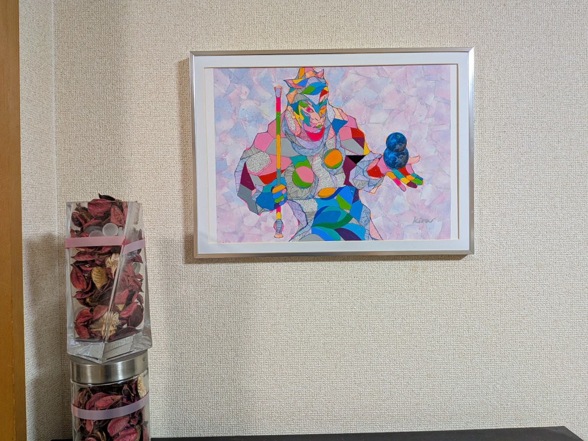 日本の神社仏閣や仏像から受け取った精神性を、独自の色彩感覚によって現代的に再構築しています。