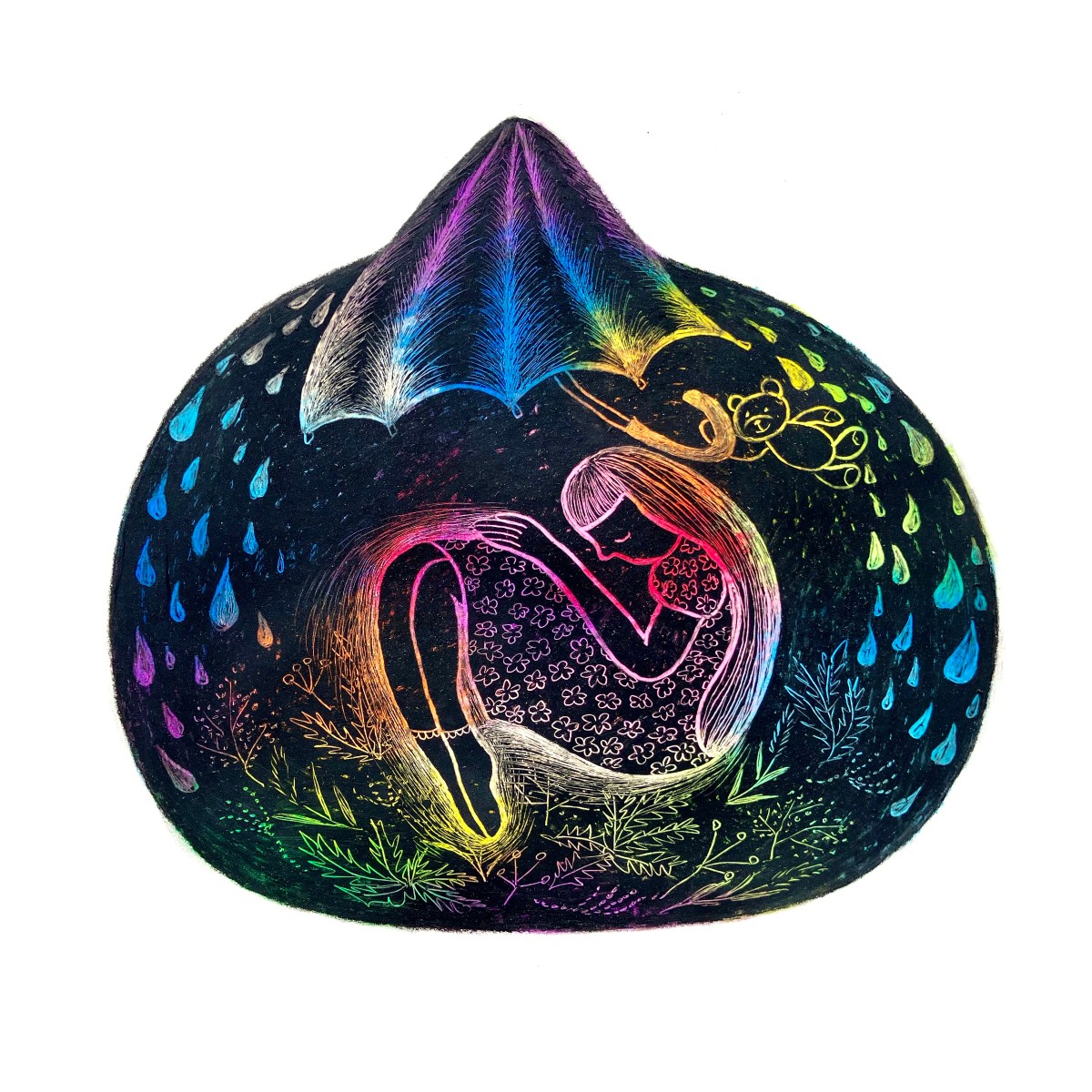 タグ: [第16回みんなの美術展応募作品, 他者と自己, 関係性, 二面性, 内面世界, 感情の層, ケア, 回復, 弱さと強さ, ドローイング, スクラッチ]