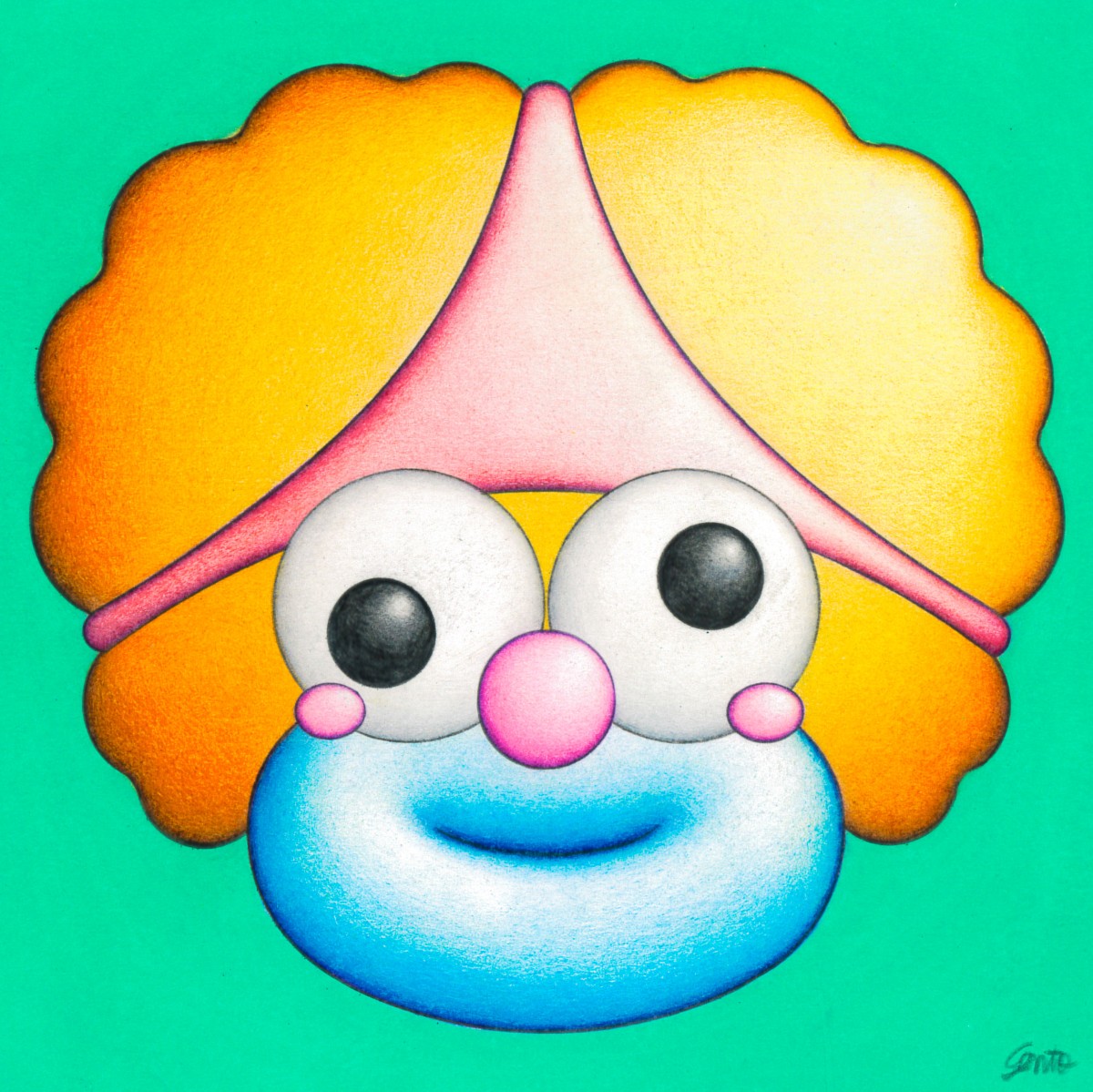 事物の外面にとらわれることなく本質をとらえる観察を重視。観察を通じてみえてくるものを色鉛筆による緻密なグラデーションで表現し、立体感のあるポップなキャラクターや抽象的な形へと昇華させています。