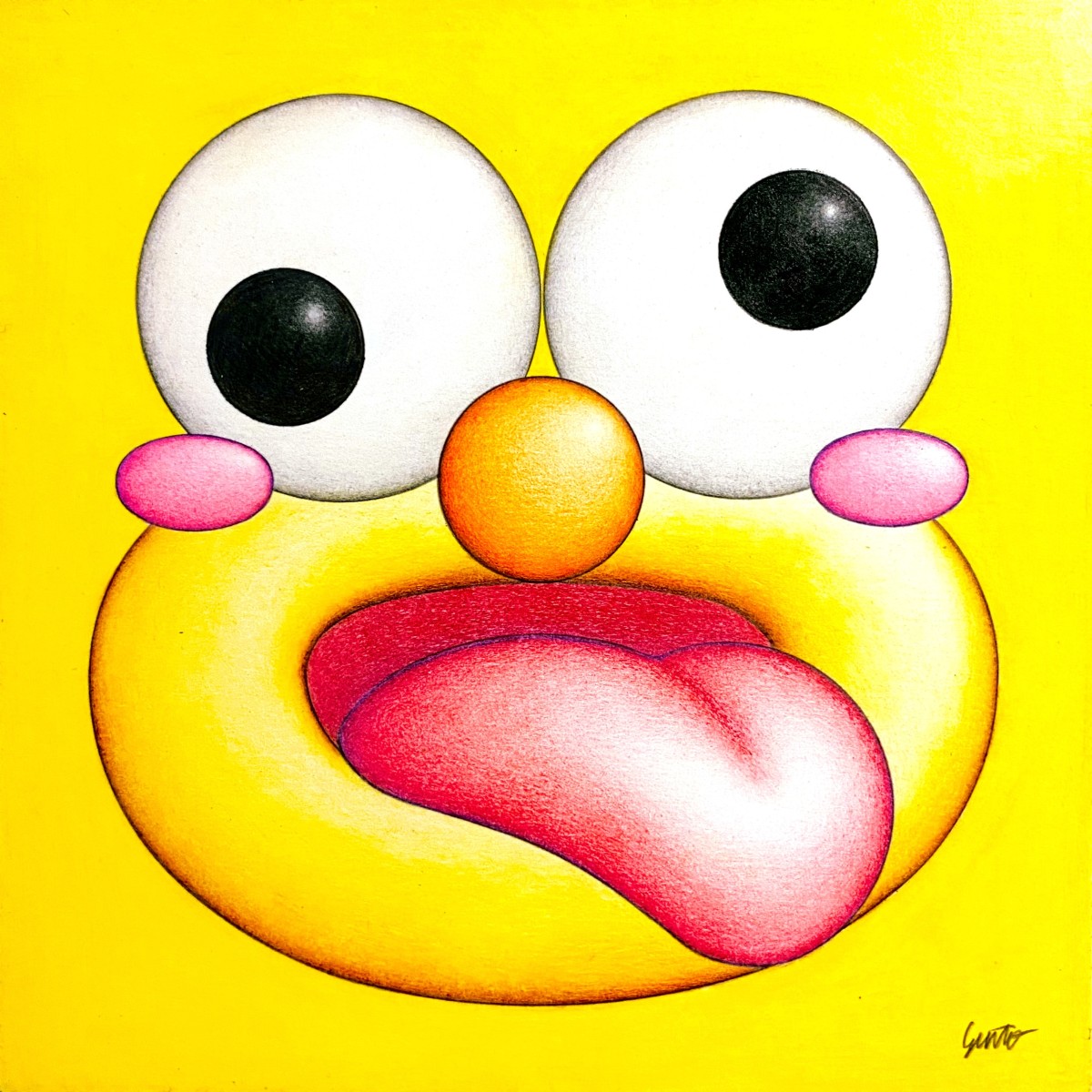 事物の外面にとらわれることなく本質をとらえる観察を重視。観察を通じてみえてくるものを色鉛筆による緻密なグラデーションで表現し、立体感のあるポップなキャラクターや抽象的な形へと昇華させています。