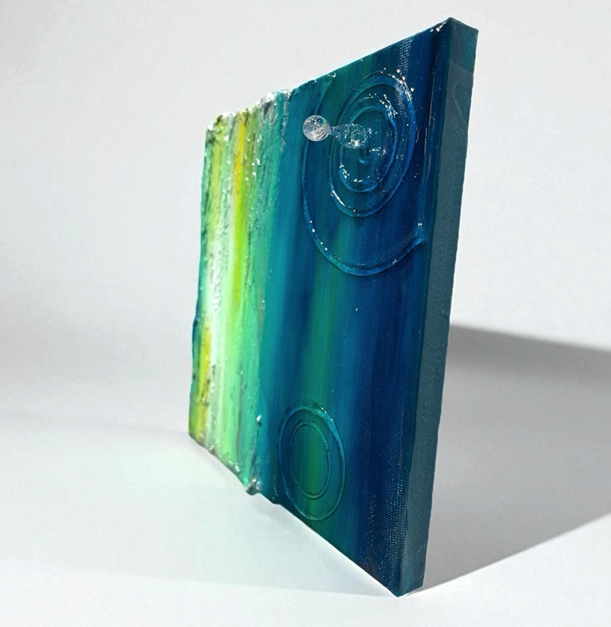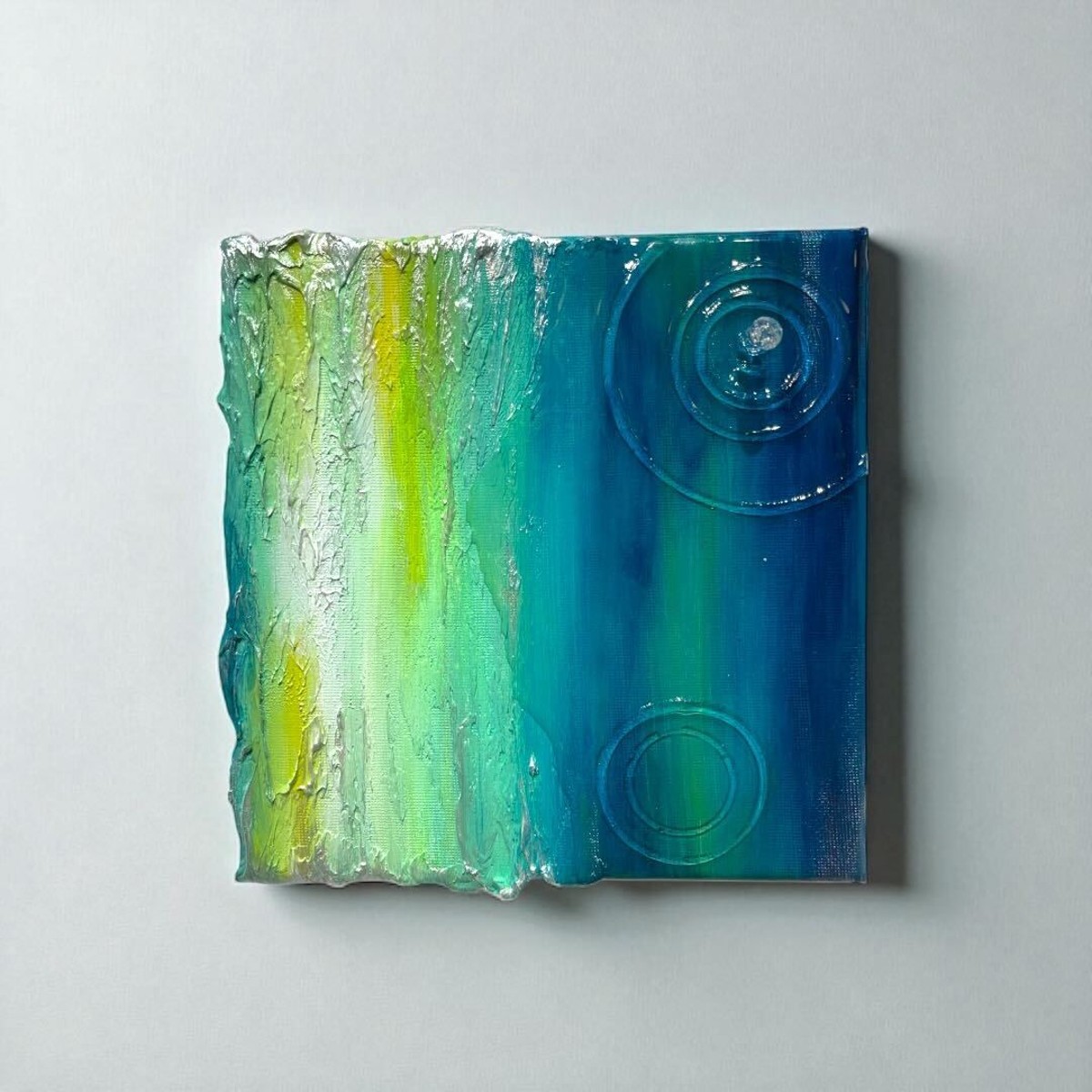 ● アクリル・レジン・金箔等を用い、水や光ゆらぎをテーマにした半立体/抽象アートを制作