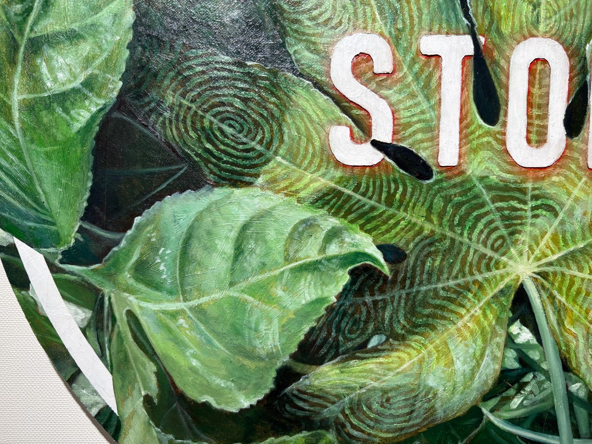 普段の日常の中で見落とされがちなものを、記録するように描く。整った美しいモチーフよりも、欠けていたり朽ちていたりするものに惹かれている。それらはいずれ消えていく存在であり、移ろう時間の気配を抱えたまま画面の中に留めようとしている。近年は「手」というモチーフを中心に制作しており、包み込む、触れる、掬い上げるといった仕草や、手の形に呼応する自然物を重ねながら、忘れられていく記憶や日常の断片を留める象徴として描いている。