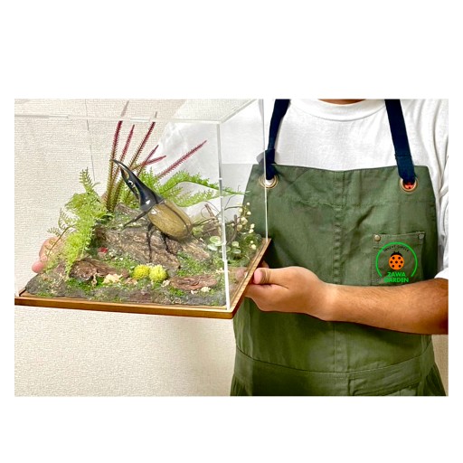 アフリカに制作するサバゲノコギリクワガタ昆虫標本を使用した作品。 サバゲノコギリクワガタは小さい体と綺麗な模様とは裏腹に獰猛な...